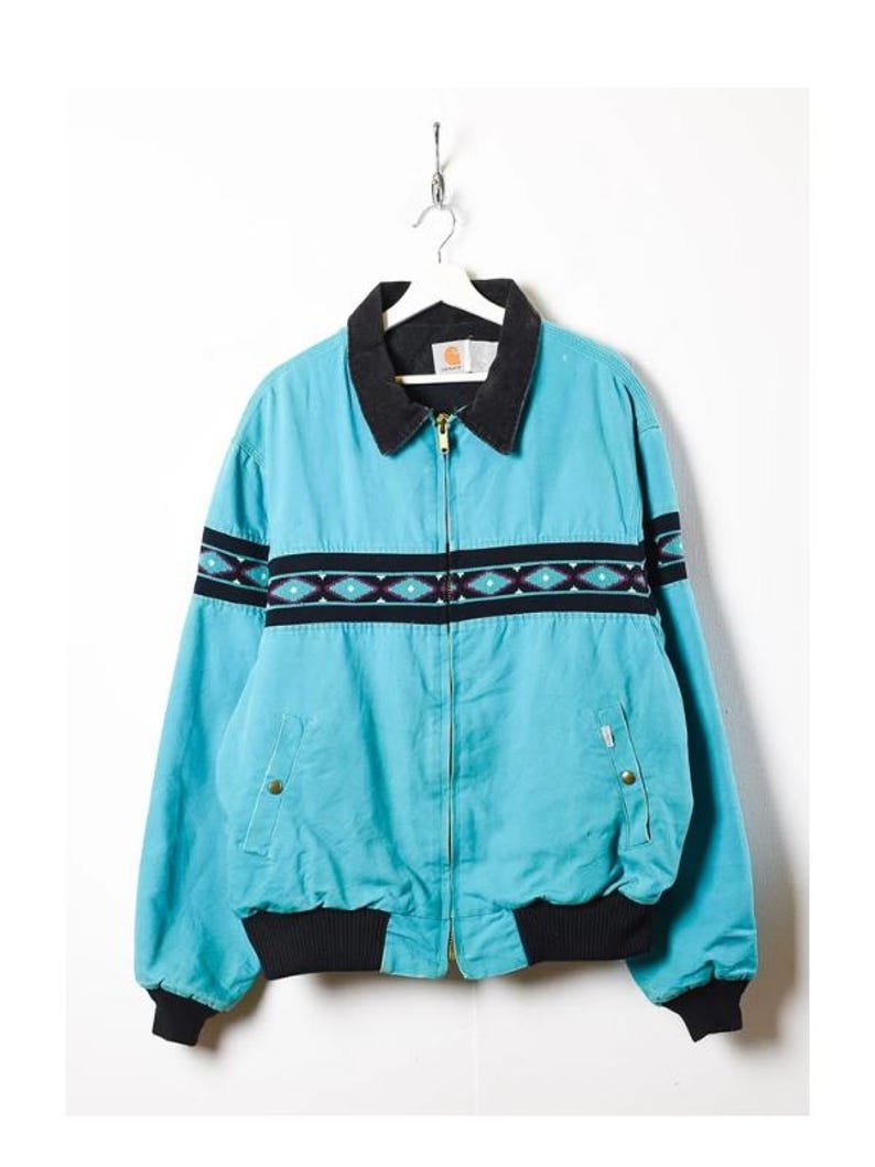 Vintage 90s Carhart Aztec Turquoise Blue Jacket